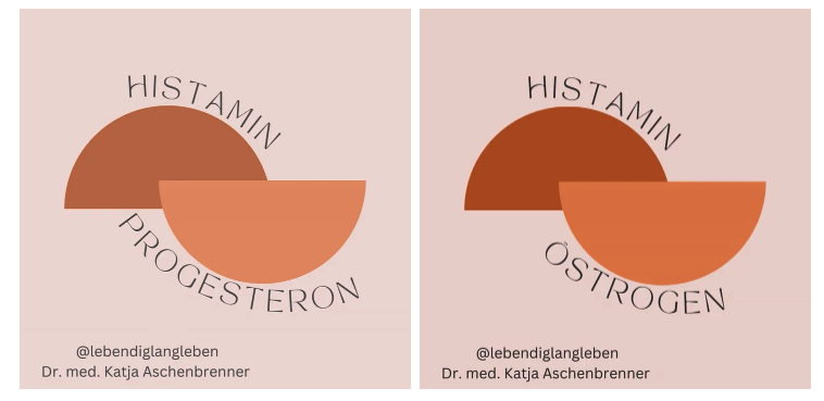 Östrogen kann die Histaminfreisetzung erhöhen und die Aktivität der Histaminrezeptoren verstärken. Dies bedeutet, dass Frauen in bestimmten Phasen ihres Menstruationszyklus, wenn der Östrogenspiegel hoch ist, anfälliger für Histamin-bedingte Symptome sein können. Dies kann sich in Form von allergischen Reaktionen, Kopfschmerzen oder sogar in einer erhöhten Empfindlichkeit gegenüber bestimmten Lebensmitteln äußern. In den Wechseljahren bzw. vor allem in den 10 Jahren, bevor die letzte Regelblutung auftritt (Perimenopause), kann es ebenfalls zu starken Schwankungen im Hormonhaushalt kommen. Manchmal ist dann z.B. das Östrogen (relativ zum Progesteron gesehen) zu hoch und kann zu Histamin-bedingten Beschwerden führen.