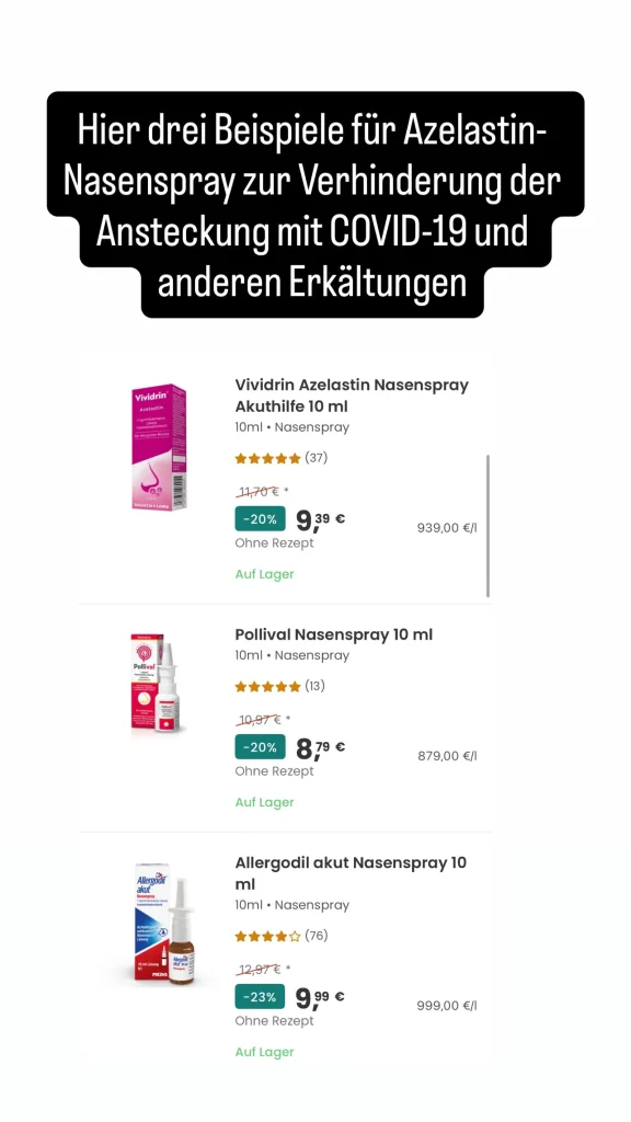 Azelastin blockiert nicht nur Histamin (das bei Allergien Beschwerden auslöst), sondern scheint auch mehrere Viren zu bremsen, darunter SARS-CoV-2, Influenza und Rhinoviren. Es beeinflusst bestimmte Andockstellen der Viren in der Nasenschleimhaut und erschwert so das Eindringen in die Zellen.